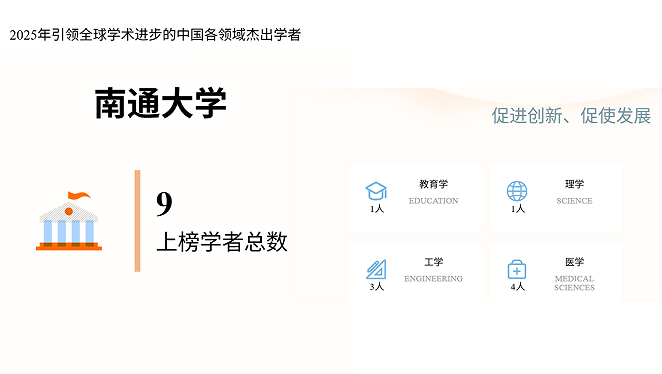 On January 30, Elsevier released the 2025 "Highly Cited Chinese Researchers" list, featuring nine distinguished scholars from our university: Gu Xiaosong, Wang Jianpu, Tang Jinbo, Gao Yongjing, Sun Jitao, Chen Jianxin, Ren Xuehong, Deng Yuqin, and Qian Zhongming. Their expertise spans multiple disciplines including: Basic Medicine, Materials Science and Engineering, Clinical Medicine, Mathematics, Information and Communication Engineering, Textile Science and Engineering, Sports Science, Pharmacy. Compared to the 2024 list, our university has increased its number of highly cited scholars by two, reflecting growing research impact across diverse academic fields.